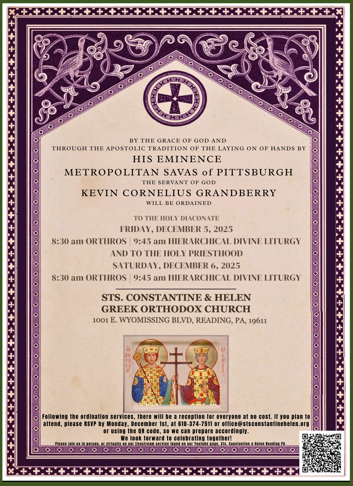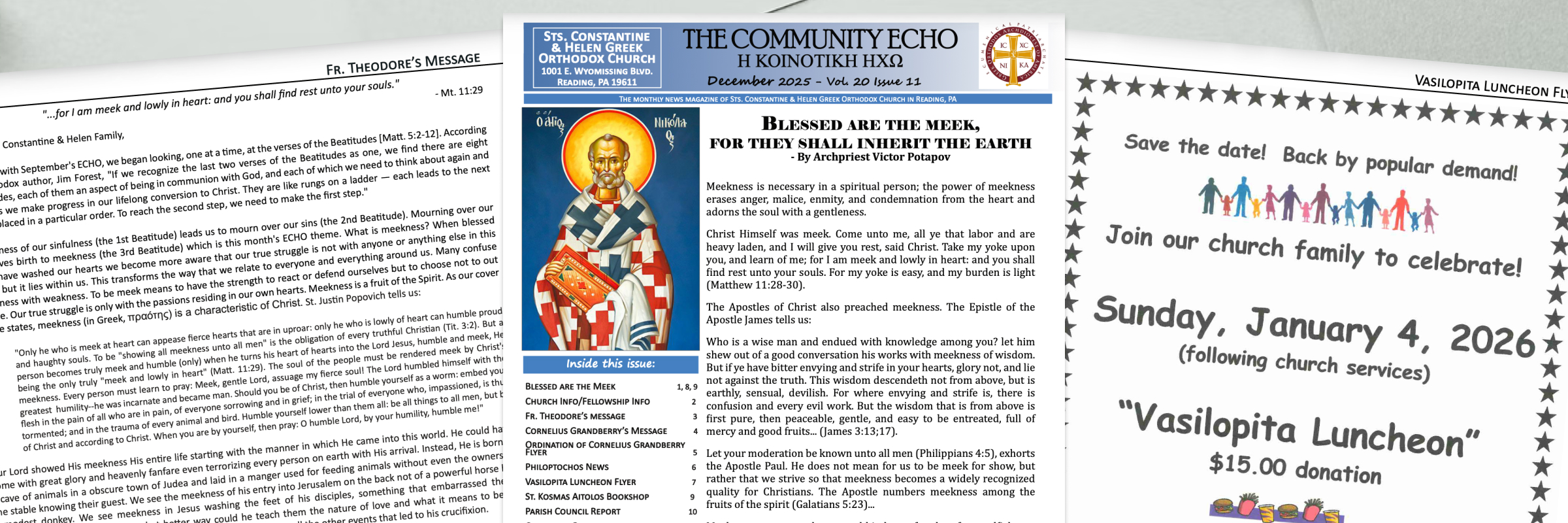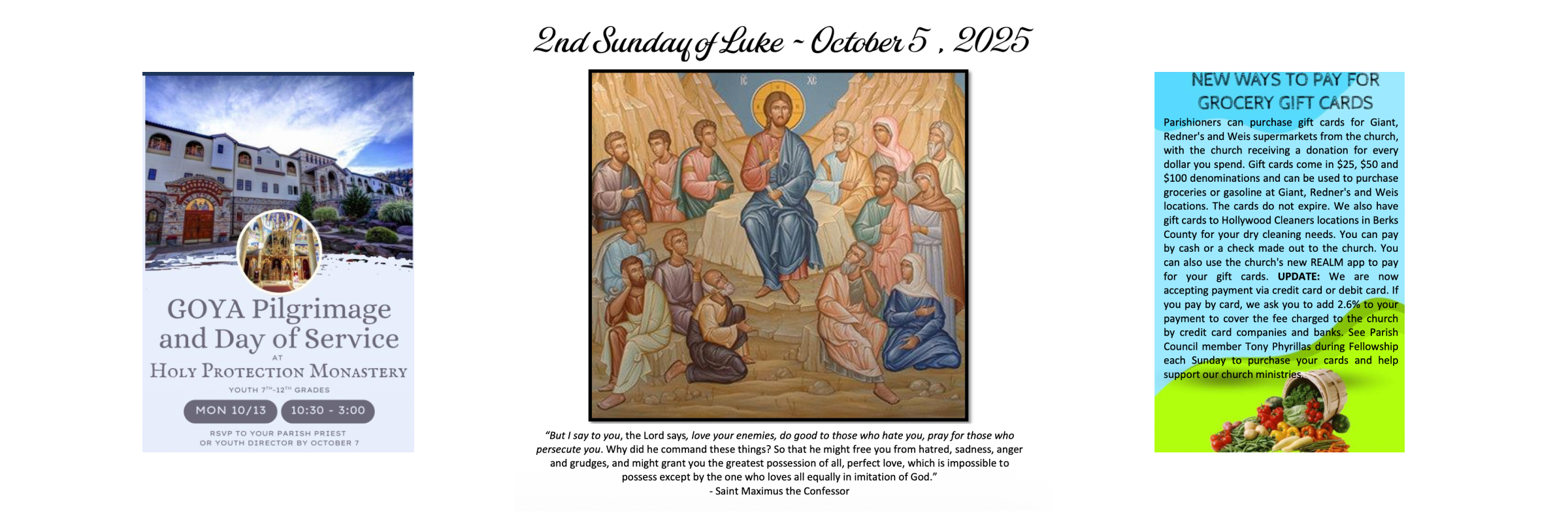 We are called by our Lord Jesus Christ to love God and our neighbor, to become one as a community of believers and to personally strive for theosis (oneness with God). Our Mission as a parish is to acknowledge our Lord's calling by actively embracing the four pillars of Orthodox Christianity: Litourgia (worship), Martyria (witness), Koinonia (fellowship), and Diakonia (service).