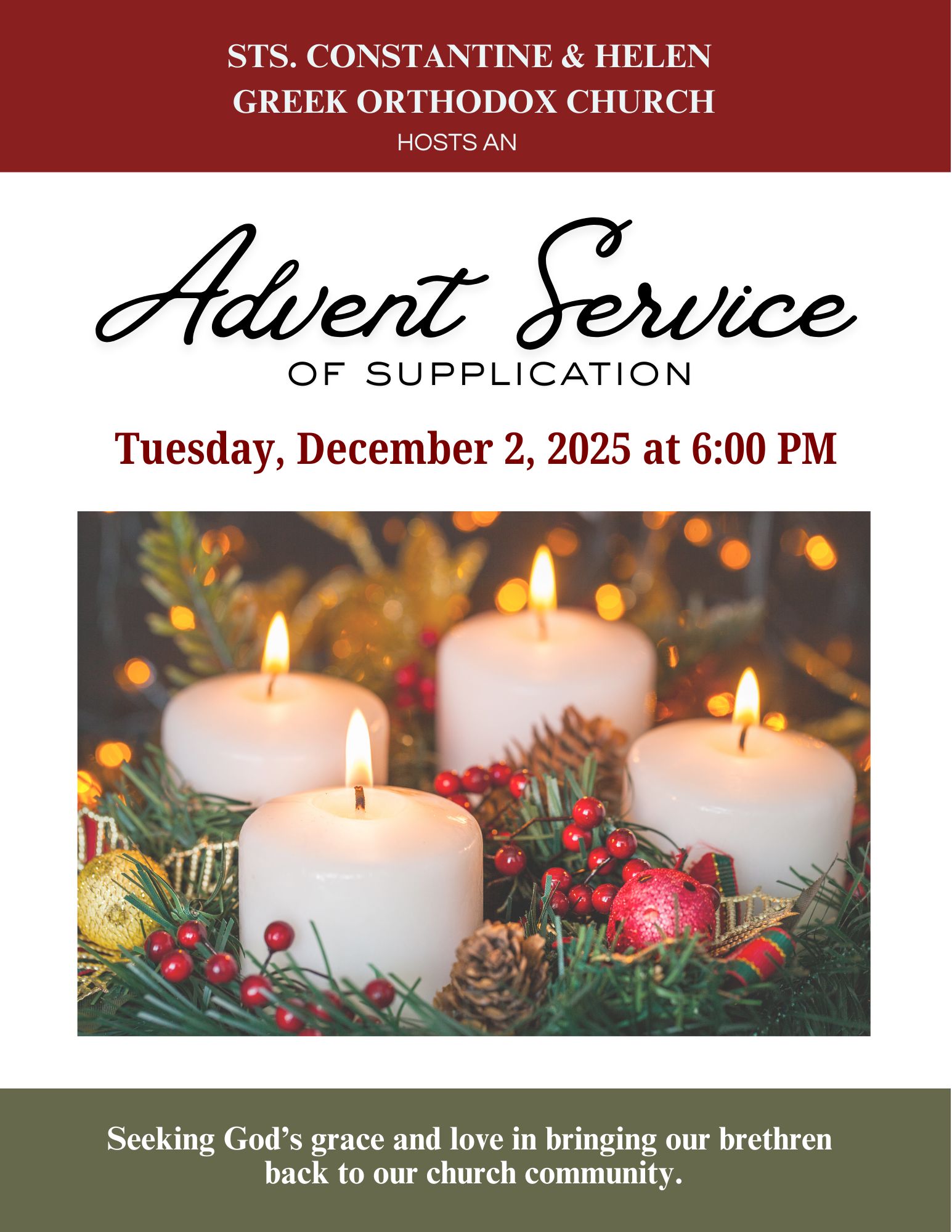 - December 2025 - Calendar, Advent Service of Supplication, AHEPA 2025 Christmas Party, Blessing of the Christmas Tree